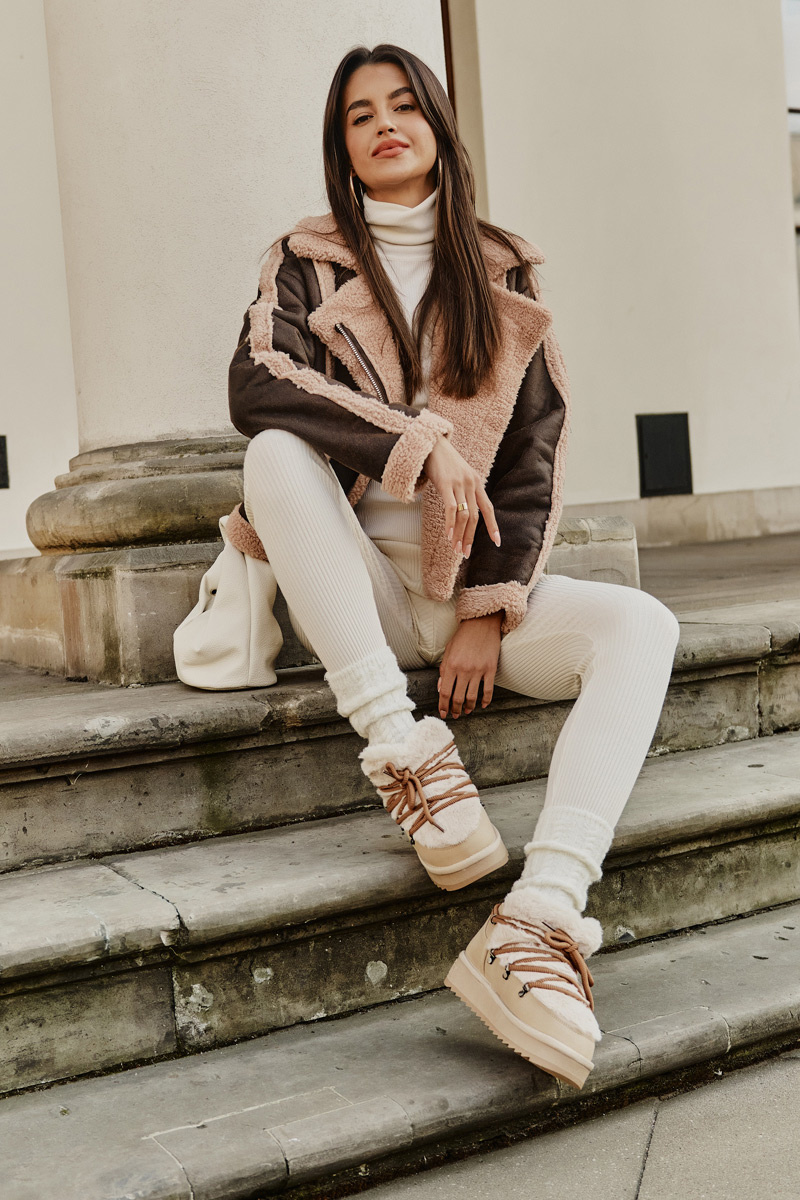 Śniegowce Niskie Platforma Futerko Beżowe D.Franklin DFSH370011