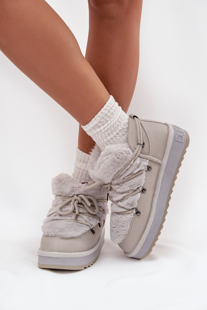 Śniegowce Niskie Platforma Futerko Jasnoszare D.Franklin DFSH370011