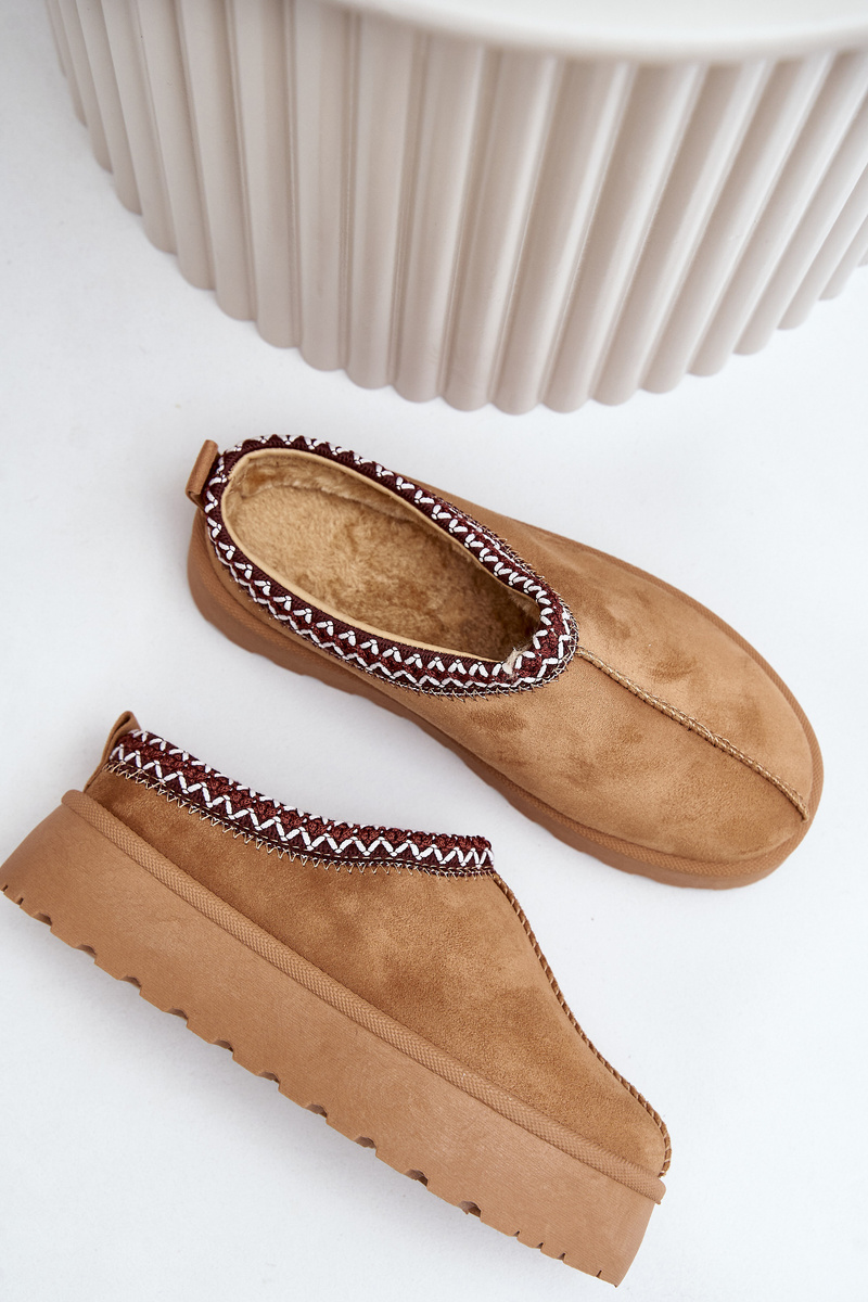 Śniegowce Niskie Z Haftem Na Platformie Camel Narirya