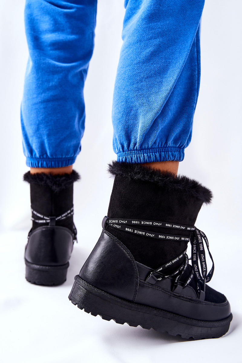 Śniegowce Ocieplane Futerkiem Na Platformie Czarne Salemi