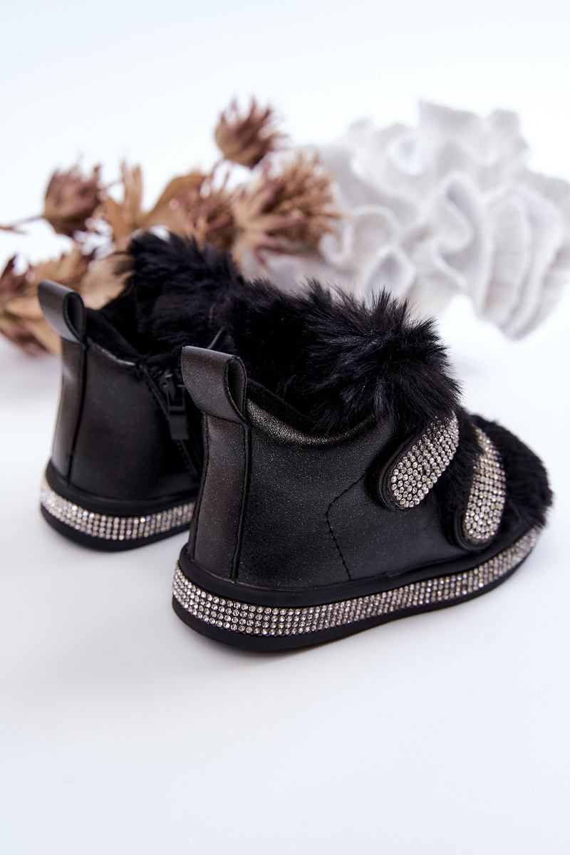 Chłodne, zimowe dni to idealny moment na zaopatrzenie się w śniegowce dla swoich pociech. Wykonane z materiału odpornego na wiatr i mróz, zapewniające ciepło przez cały dzień. Funkcjonalność tego obuwia sprawia, że zabawa na świeżym powietrzu już nie jest taka straszna! Wykonane z eko skóry z metalicznym połyskiem. Posiadają zdobienia w postaci cyrkonii przy podeszwie oraz na paskach zapinanych na rzep.