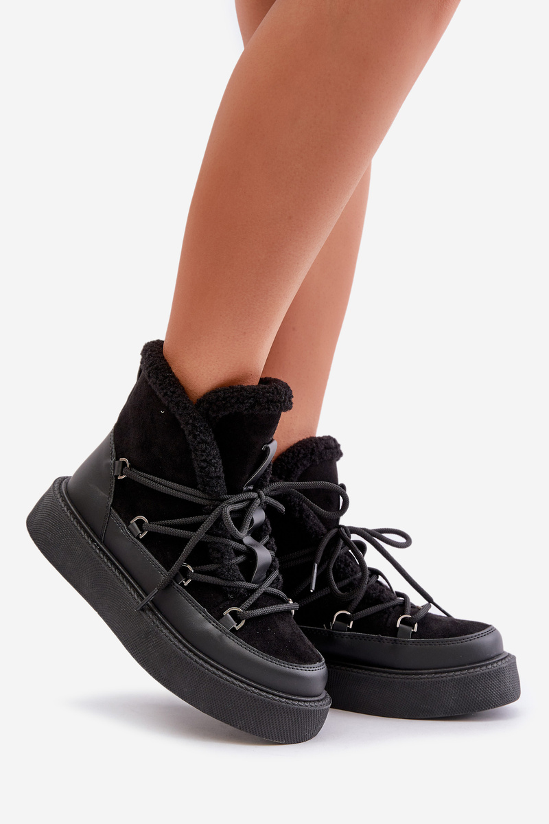 Śniegowce Z Eko Zamszu Na Platformie Czarne Tamidra