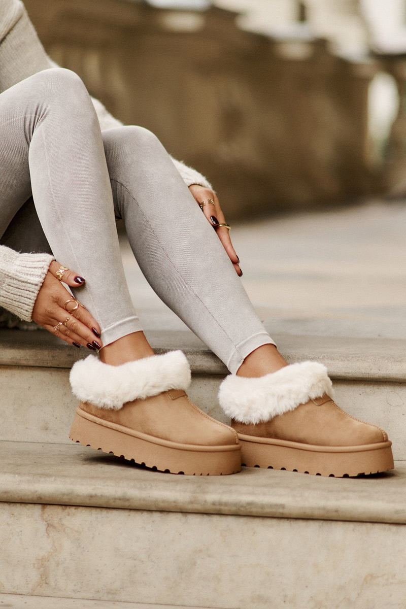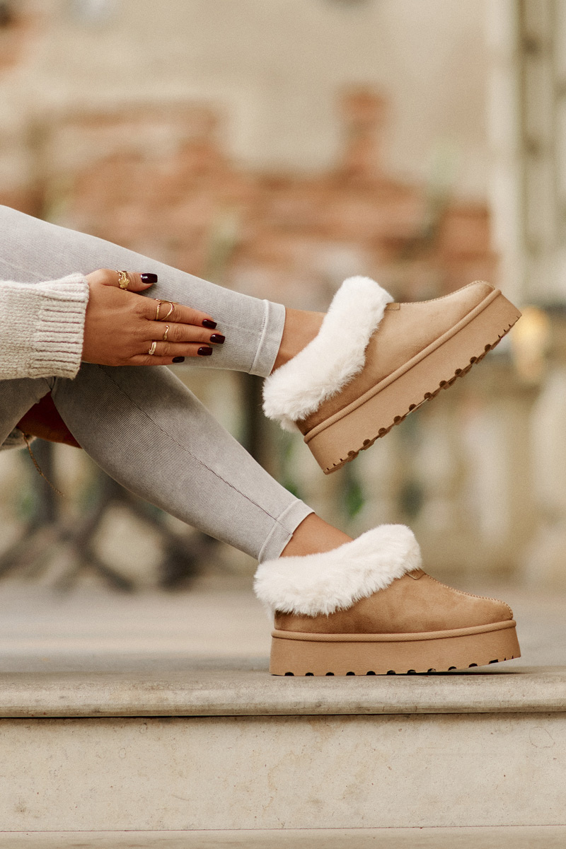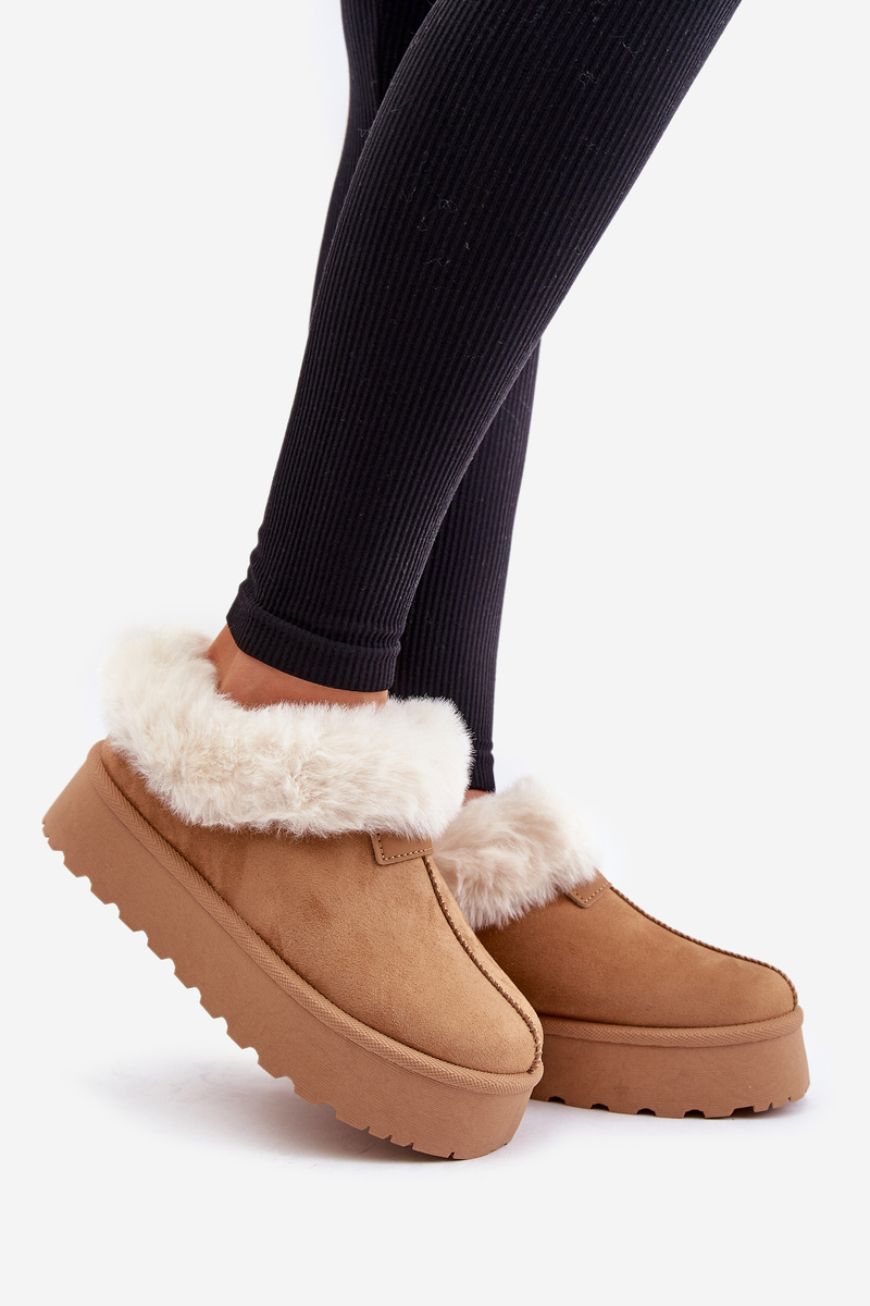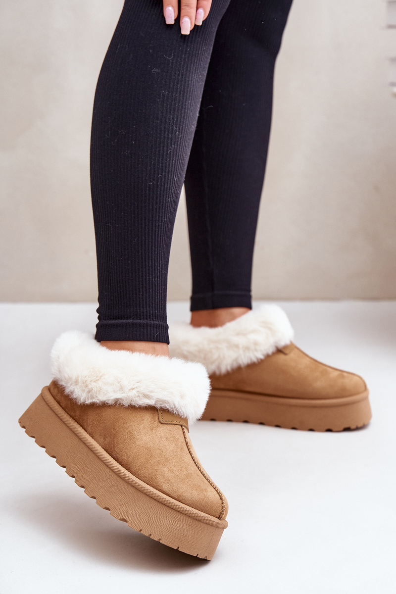 Śniegowce Z Futerkiem Eko Zamszowe Na Platformie Camel Neathoria