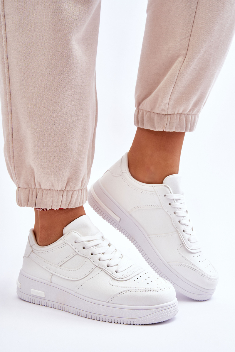 W szafie każdej kobiety powinna znaleźć się para wygodnych butów sportowych. Buty te wyróżniają się wygodą w użytkowaniu oraz wysoką jakością wykonania. Płaska podeszwa na delikatnej platformie świetnie izoluje od podłoża. Wykorzystasz je w wielu sytuacjach – podczas joggingu, spaceru czy spotkania ze znajomymi. Wykonane z eko skóry z perforacją na przodzie. Model klasycznie sznurowany. Wkładka materiałowa, wyciągana. Podeszwa wykonana z tworzywa sztucznego.