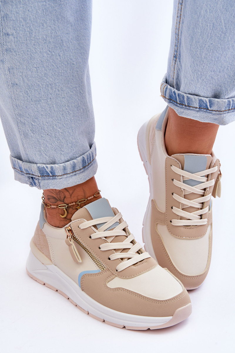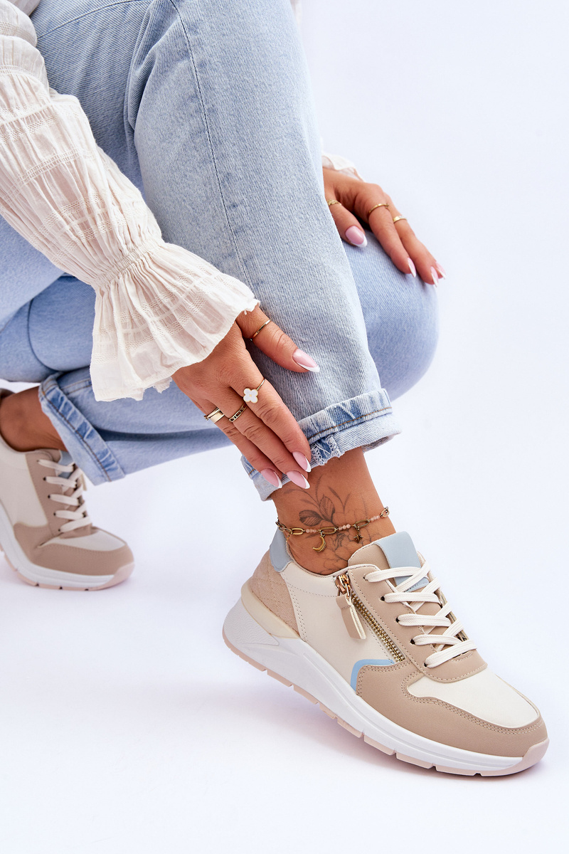 Sportowe Buty Damskie Suwak Beżowe Larisa