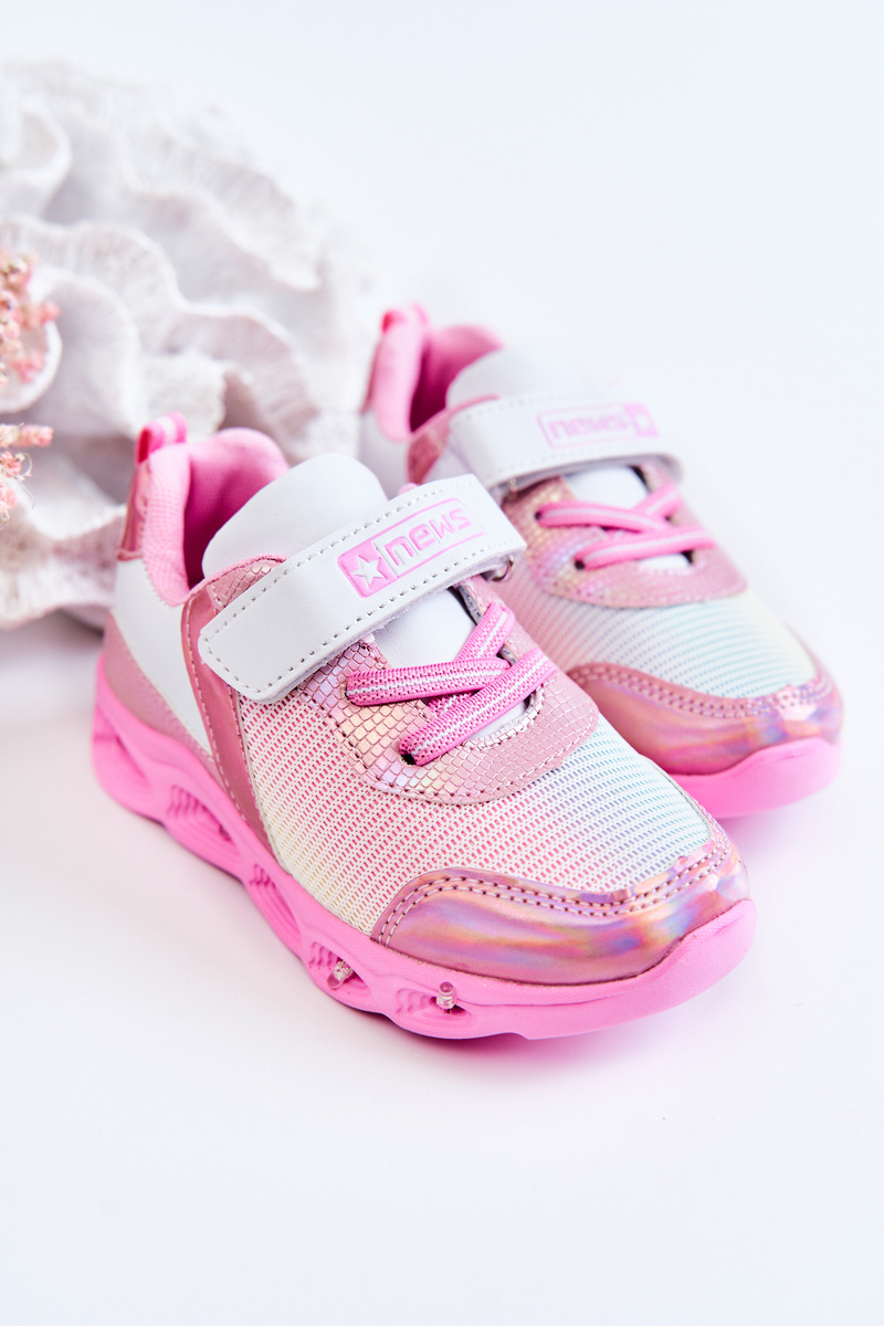 Sportowe Buty Dziecięce Skórzane Holo Biało-Różowe Loopsy