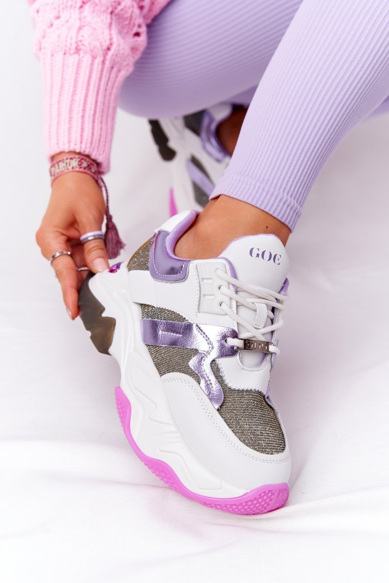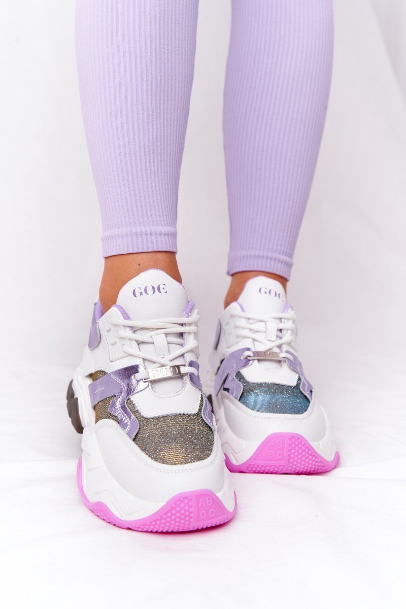 Sportowe Buty Na Dużej Podeszwie GOE HH2N4038 Biało-Fioletowe