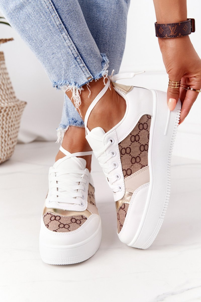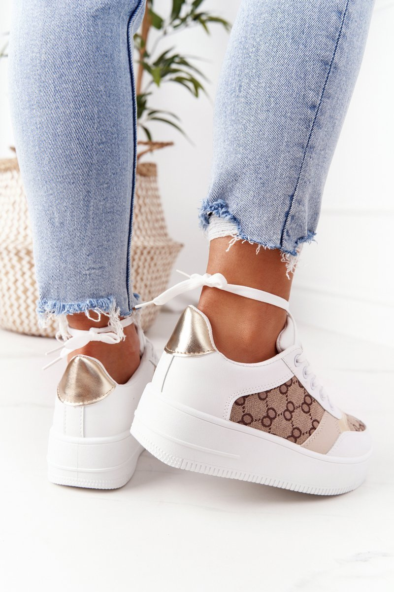 Sportowe Buty Sneakersy Na Platformie Biało-Złote Allisone