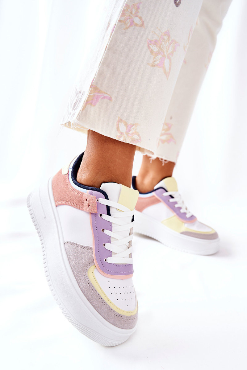 Sportowe Buty Sneakersy Na Platformie Biało-Żółte Freedom