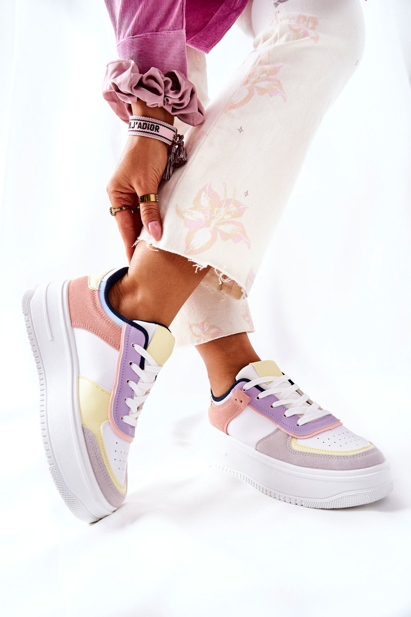 Damskie sportowe buty na platformie wykonane z eko skóry. Miękka materiałowa wkładka zapewni komfort, a kilkucentymetrowa podeszwa uniesie Twoją sylwetkę. Modny fason dopełni wiele stylizacji! Przy wyborze rozmiaru prosimy kierować się tabelą rozmiarów.