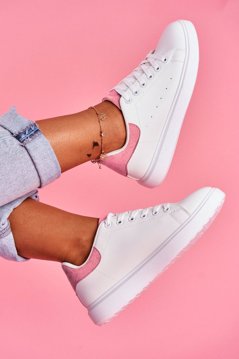 Sportowe Damskie Buty Białe z Różowym Zapiętkiem Milly