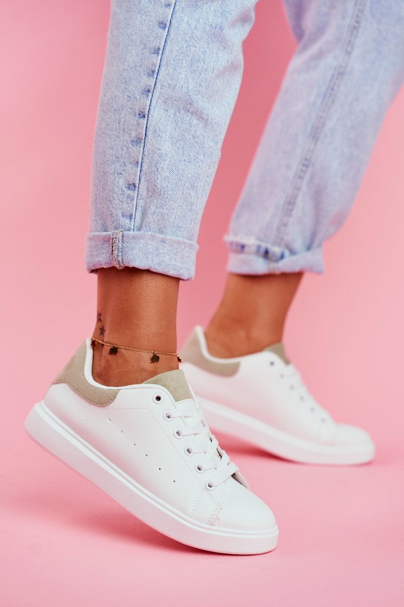 Sportowe Damskie Buty Białe z Zielonym Zapiętkiem Milly