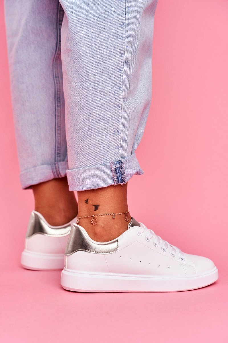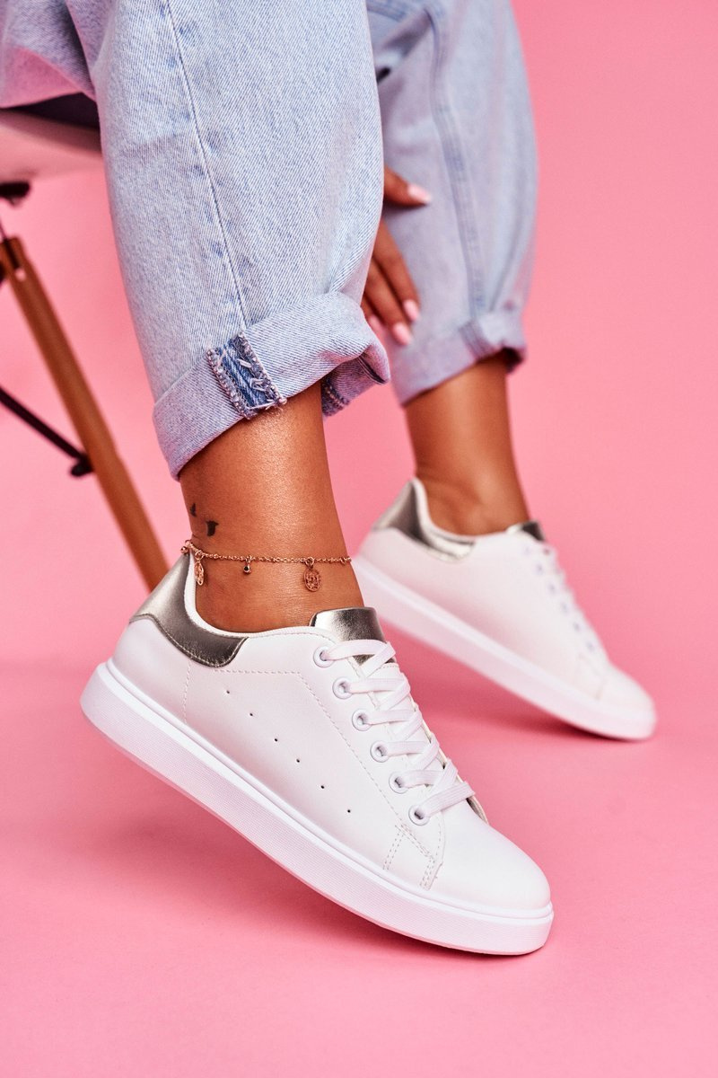 Sportowe Damskie Buty Białe ze Srebrnym Zapiętkiem Milly