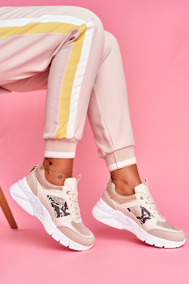 Sportowe Damskie Buty Brokatowe Beżowe Paloma