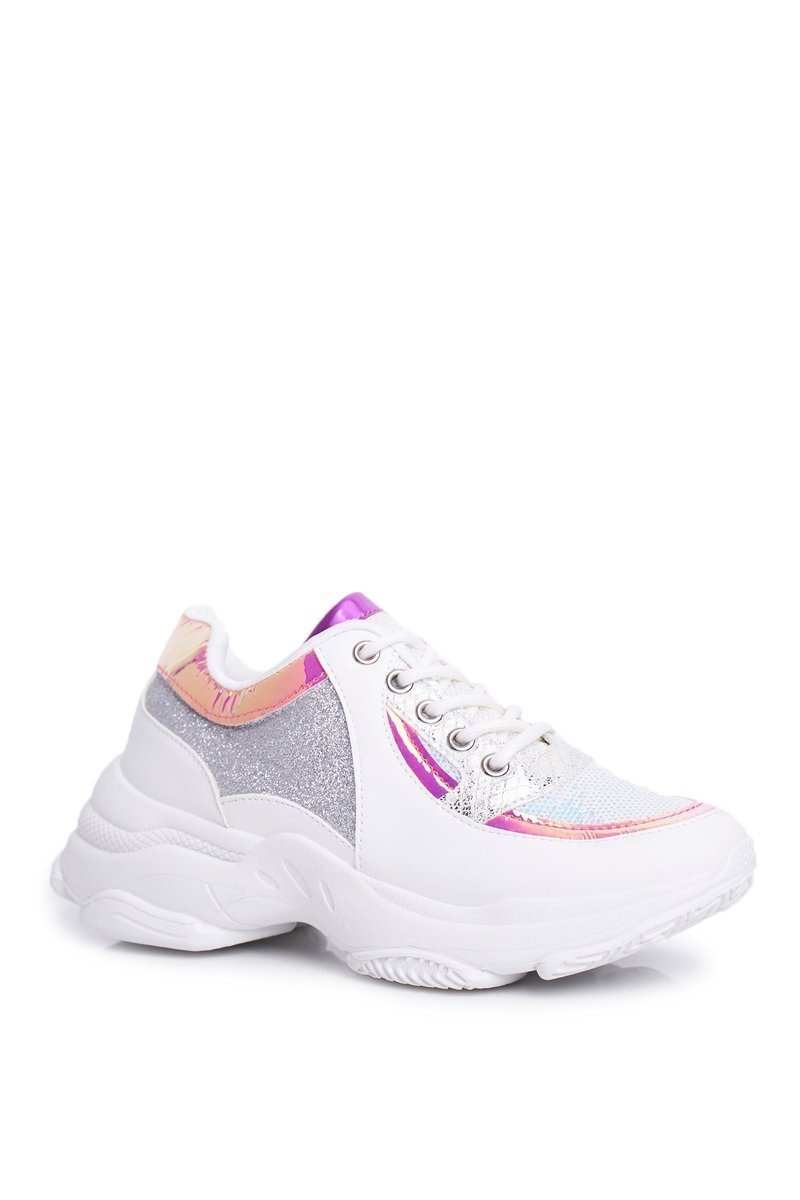 Sportowe Damskie Buty Brokatowe Białe Vebi