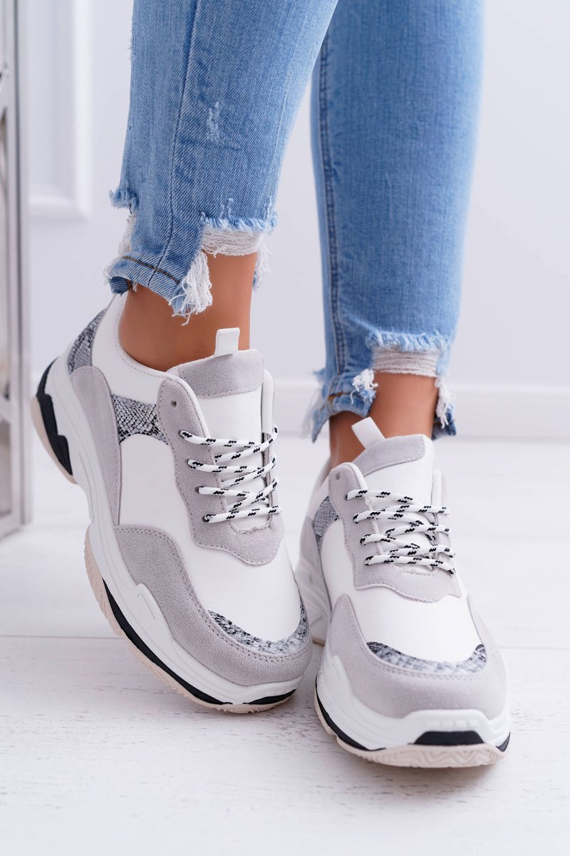 Sportowe Damskie Buty Gruba Podeszwa Białe Remember