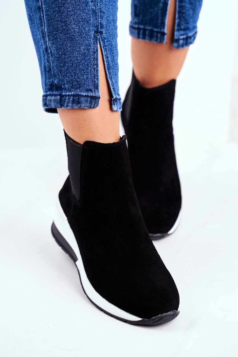 Sportowe Damskie Buty Sneakersy Skórzane Czarne 21-7781