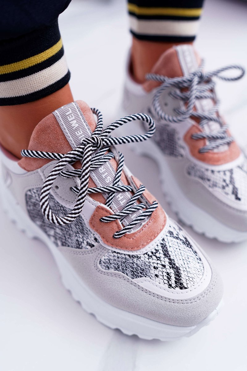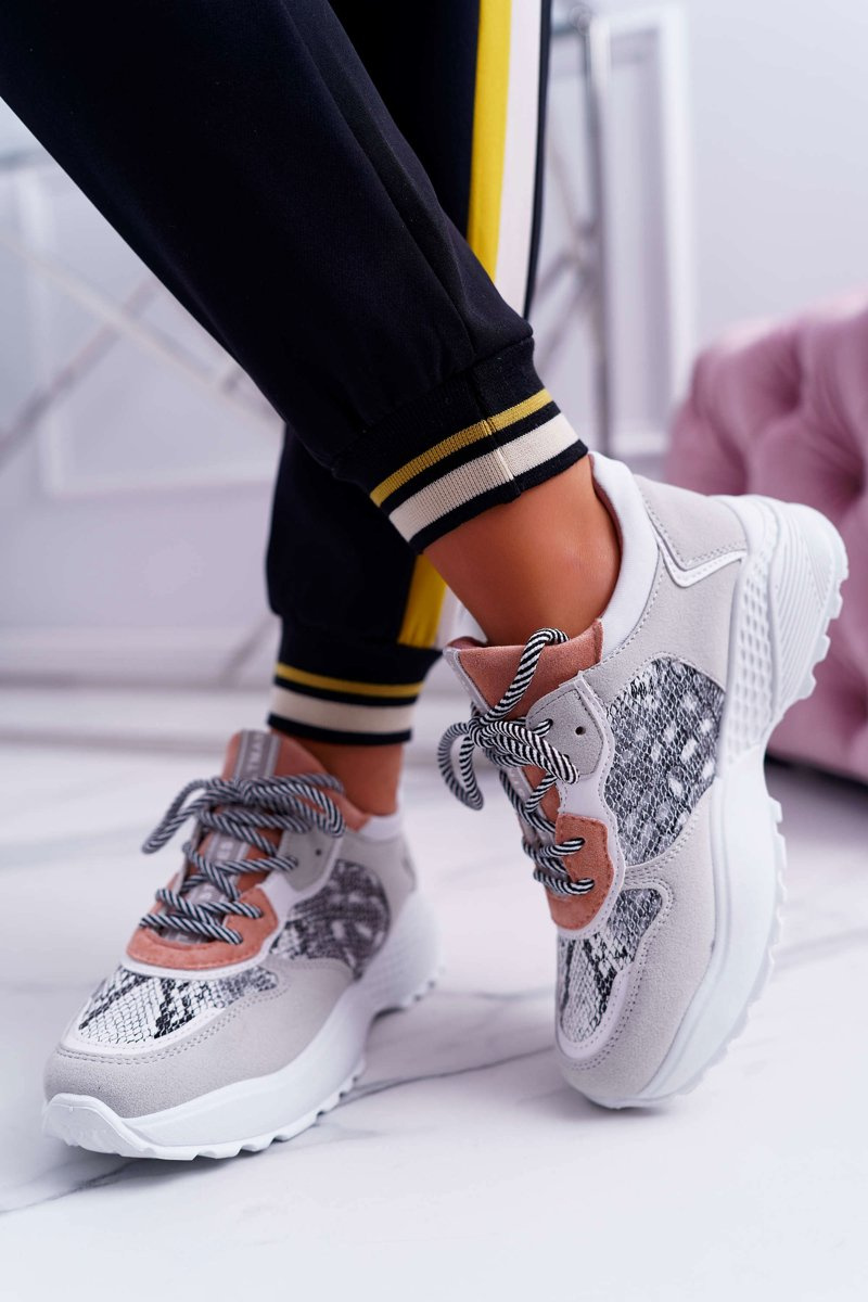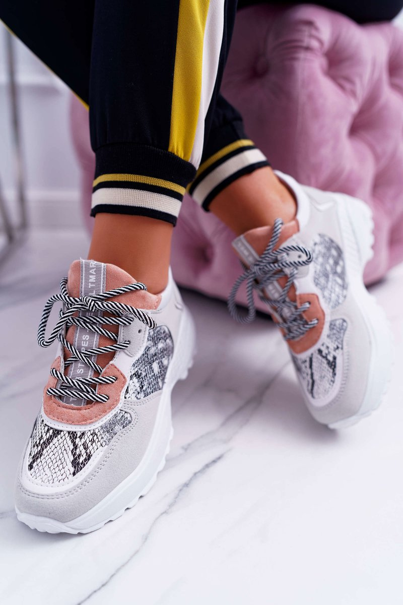 Sportowe Damskie Buty Wysoka Podeszwa Różowe Skóra Węża Chillout