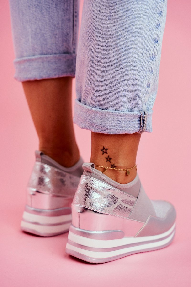 Sportowe Damskie Wsuwane Buty Na Koturnie Szare Cold Play