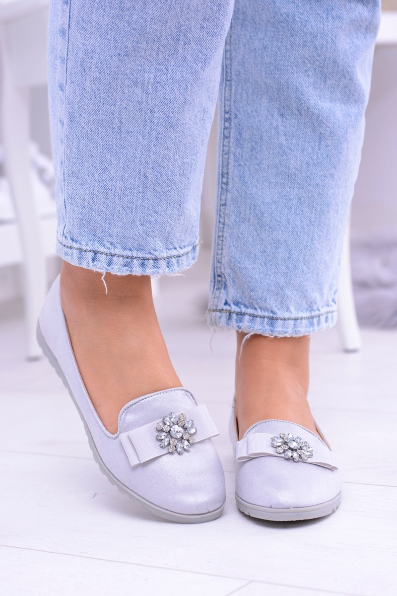 Srebrne Damskie Baleriny Lordsy Cyrkonie Rumi
