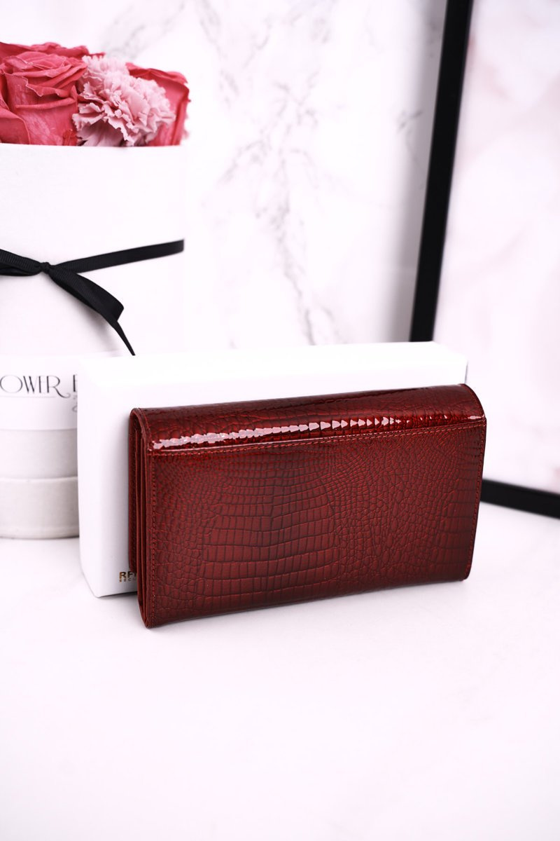 Średni Skórzany Portfel Damski LORENTI Lakierowany Czerwony