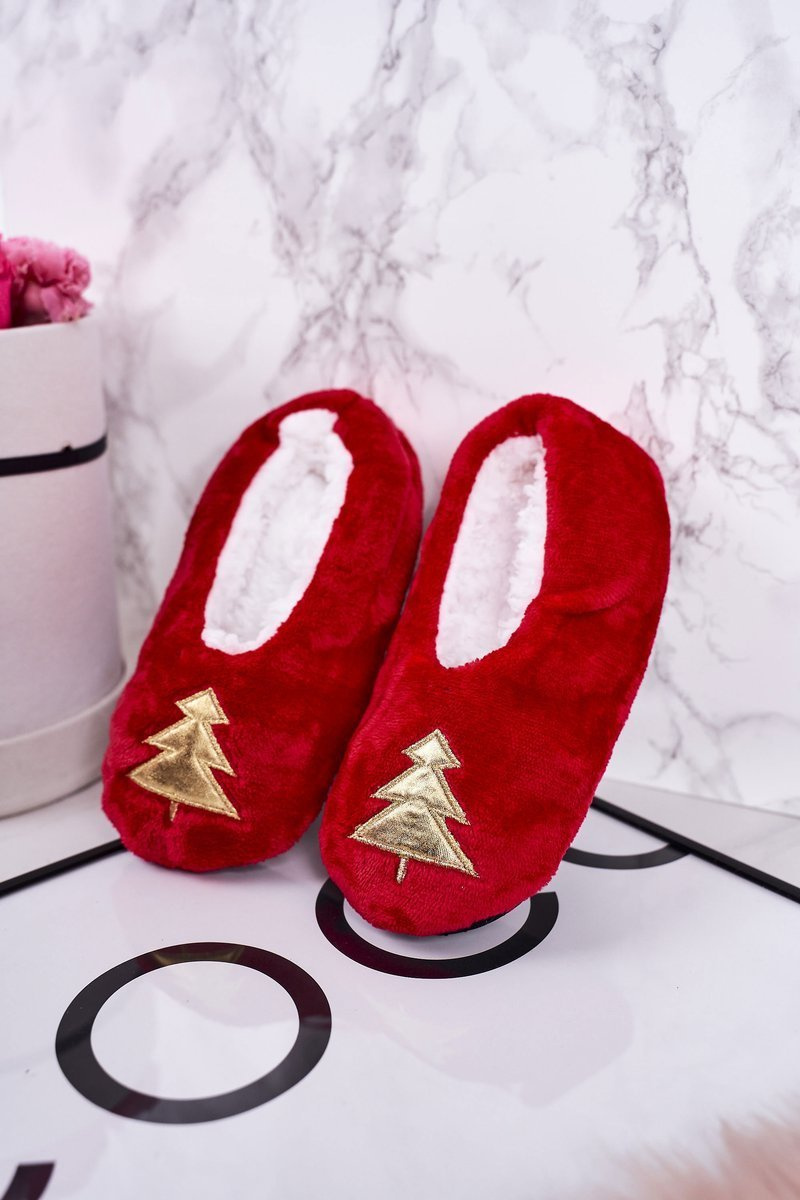 Świąteczne Dziecięce Papcie Z Choinką Czerwone Let It Snow