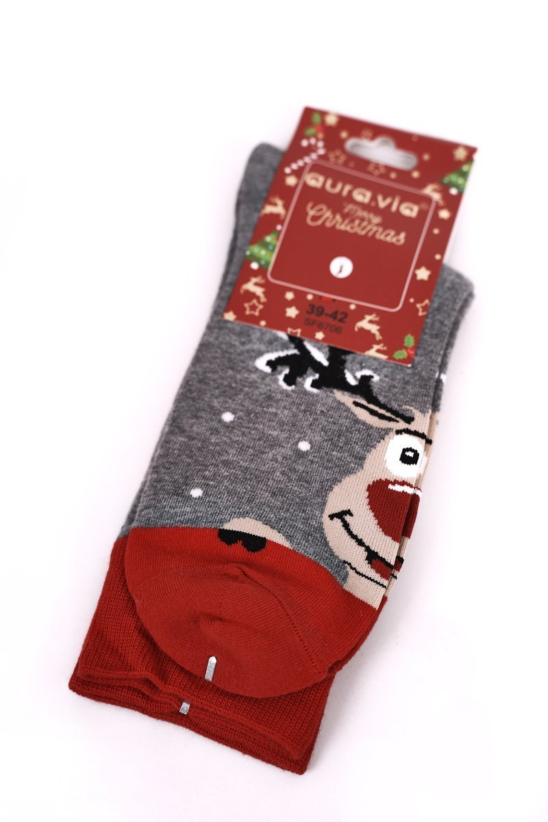 Miękkie, bawełniane skarpetki świąteczne. Skład: 85% bawełna, 10% poliamid, 5% elastan. Spraw prezent sobie lub komuś bliskiemu!
