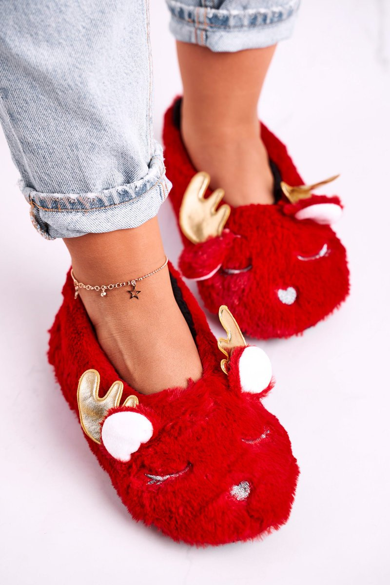 Świąteczne Ocieplane Futrzane Papcie Czerwone Jingle Bells