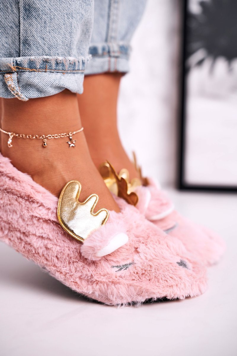 Świąteczne Ocieplane Futrzane Papcie Różowe Jingle Bells
