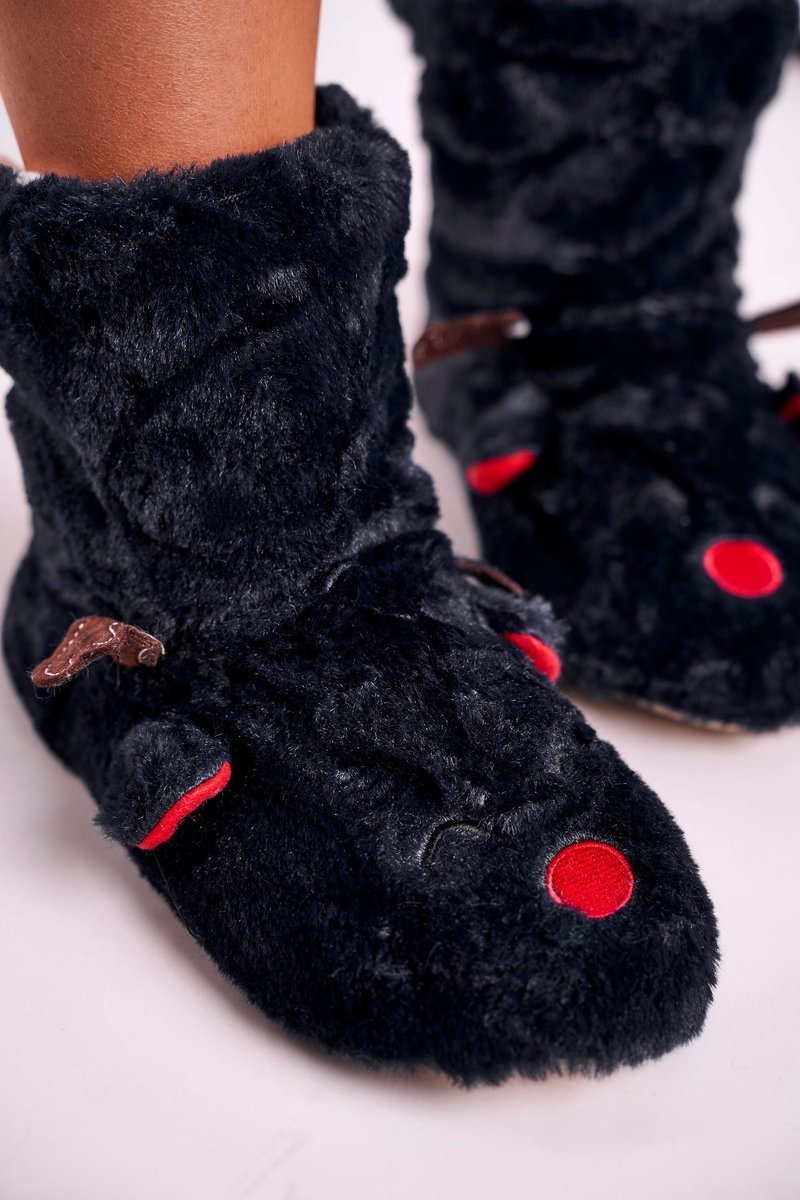 Świąteczne Papcie Z Reniferem Ocieplone Kożuszkiem Czarne Rudolph