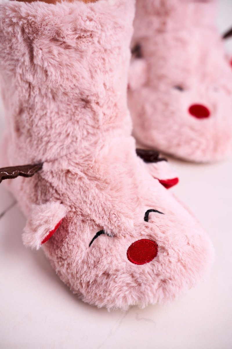 Świąteczne Papcie Z Reniferem Ocieplone Kożuszkiem Różowe Rudolph