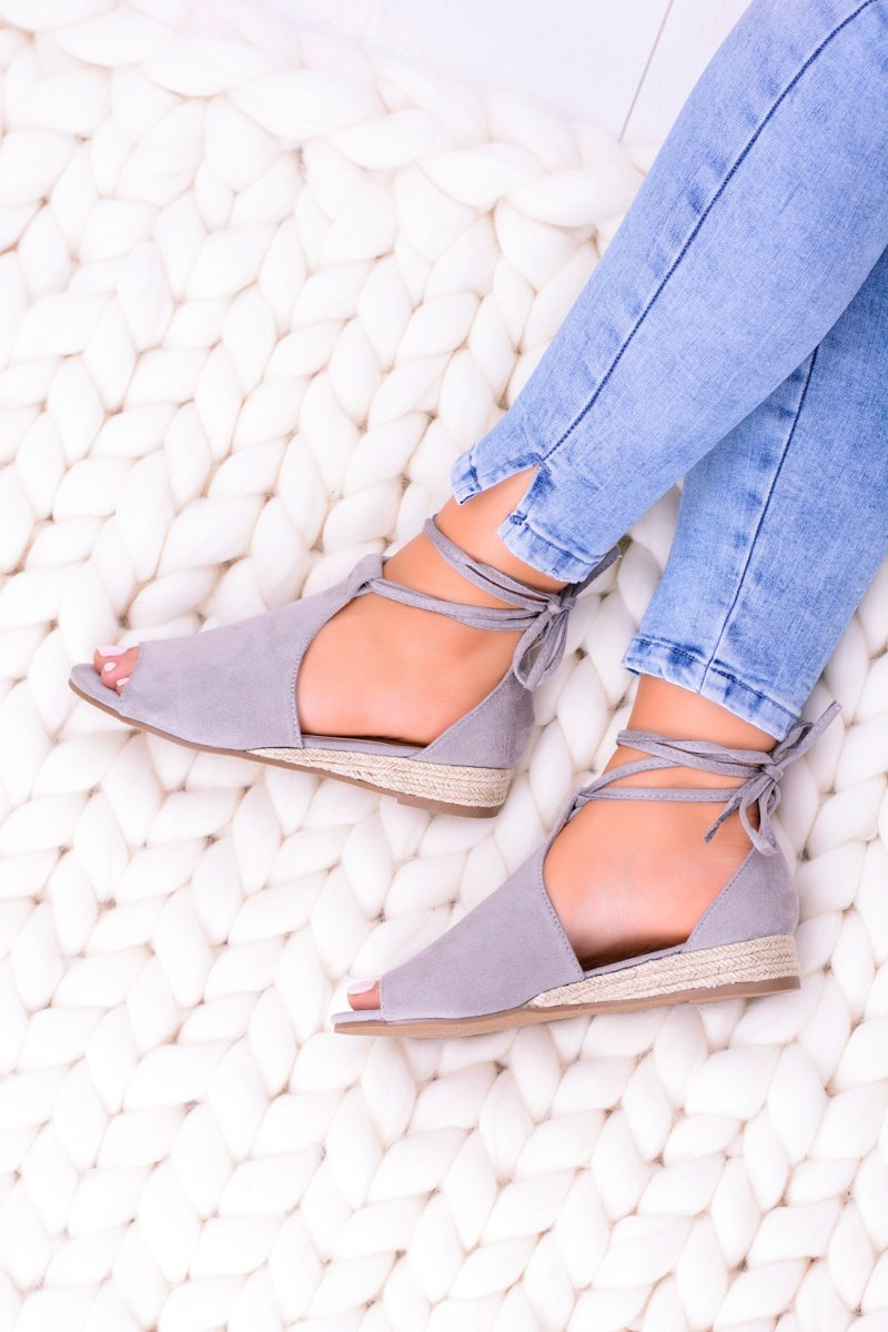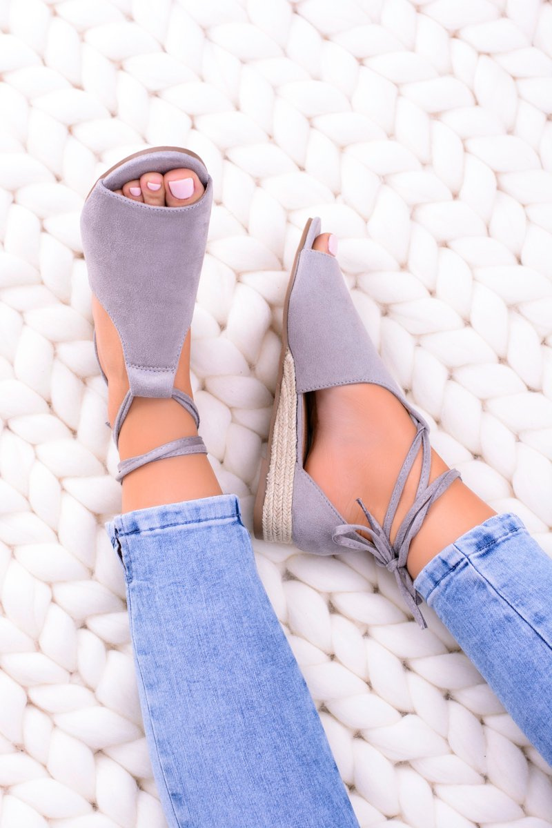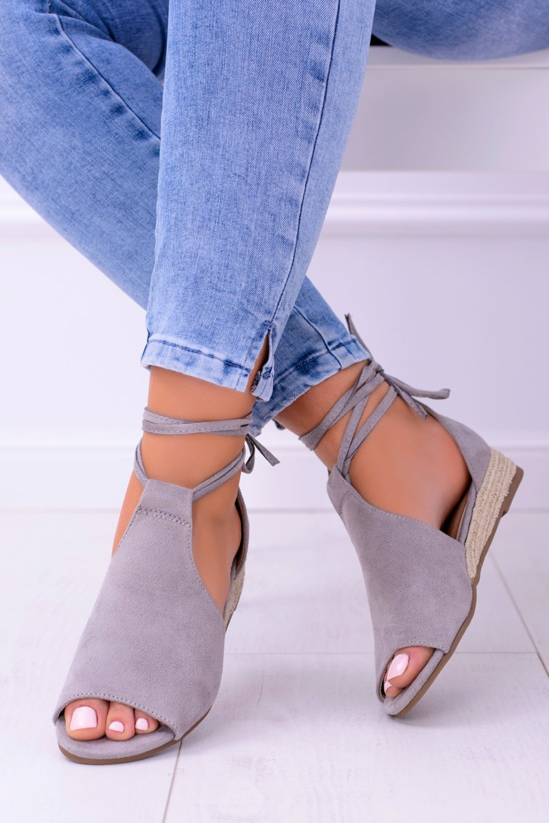 Szare Zamszowe Sandały na Lekkim koturnie Espanoso
