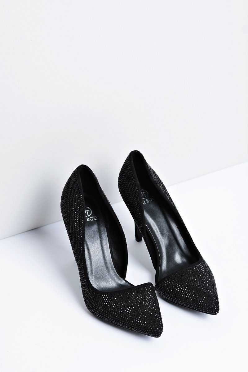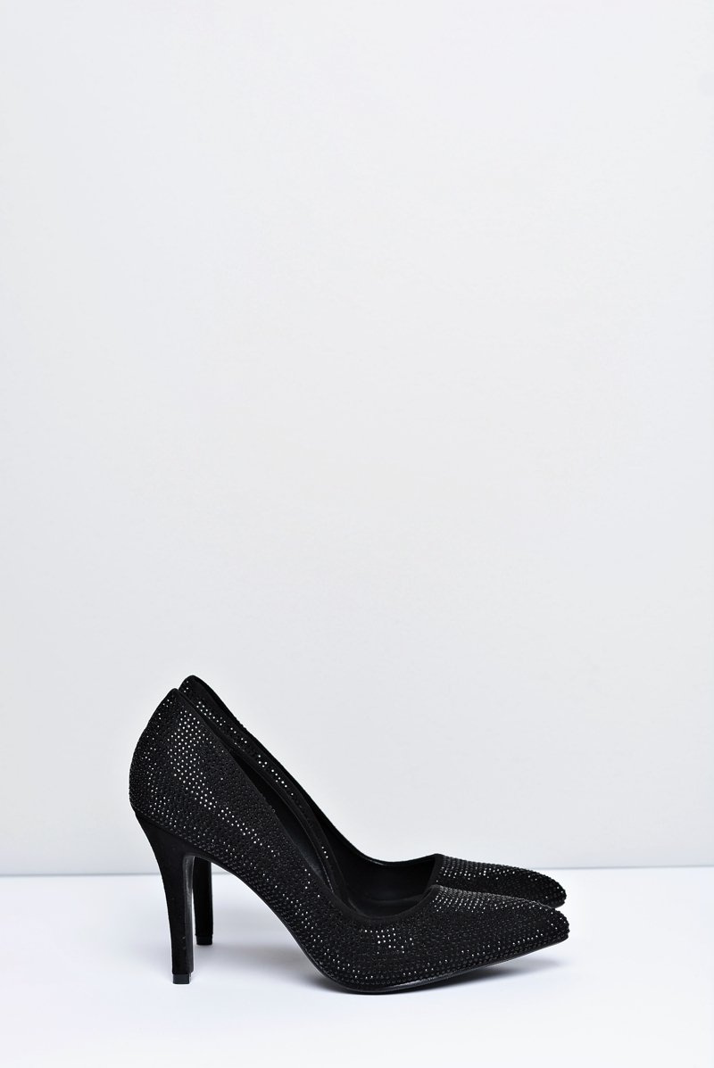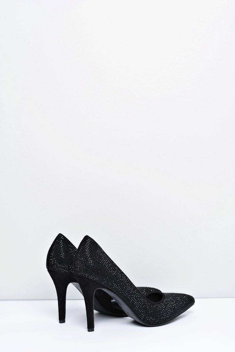 Szpilki Damskie Czarne Zamszowe Cyrkonie Asymetryczne Santee