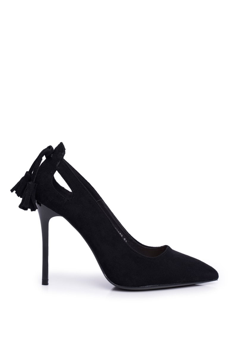 Elegancja i styl ! Czółenka na cienkim obcasie sprawią, że Twoje stylizacje zachwycą każdego! Klasyczne szpilki sprawdzą się podczas wielu okazji – do pracy, na spotkanie rodzinne czy przyjęcie. Musisz mieć je w swojej szafie! Wykonane z eko zamszu. Zdobione subtelnymi frędzelkami na zapiętku. O komfort zadba delikatna wkładka, więc nie musisz się już martwić o bolące stopy.