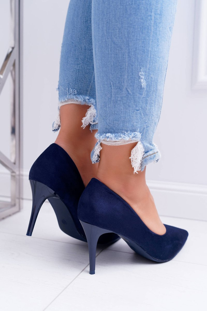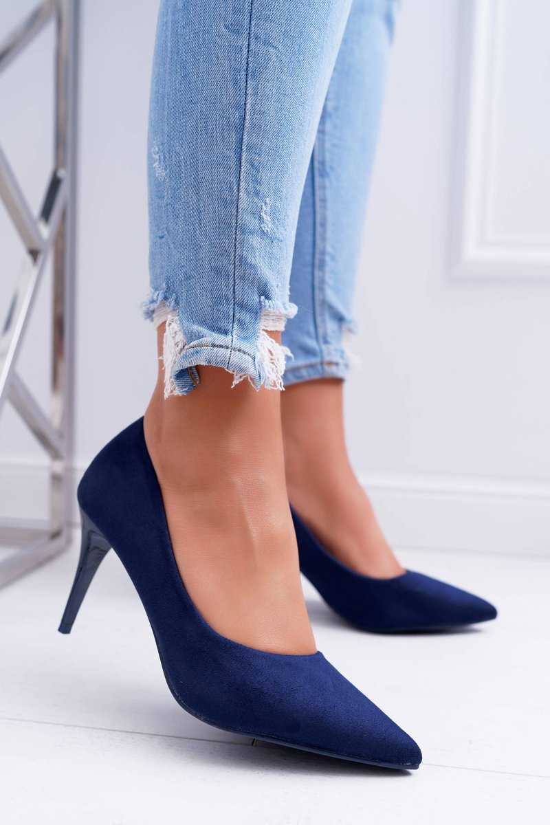 Szpilki Damskie Zamszowe W Szpic Granatowe Cream