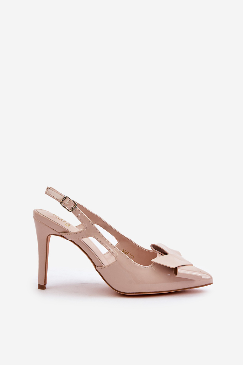 Szpilki Lakierowana Eko Skóra Odkryta Pięta Beżowe Auroravia
