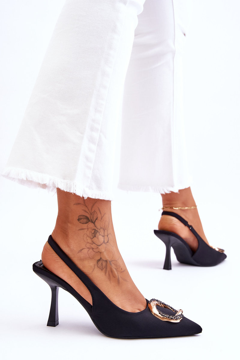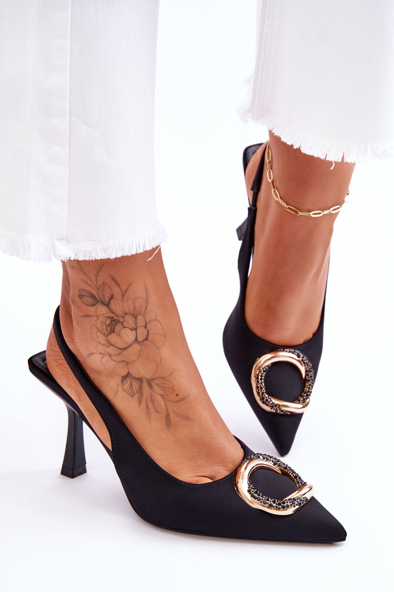 Elegancja i styl! Czółenka na cienkim obcasie sprawią, że Twoje stylizacje zachwycą każdego! Klasyczne szpilki sprawdzą się podczas wielu okazji – do pracy, na spotkanie rodzinne czy przyjęcie. Musisz mieć je w swojej szafie! Wykonane z wierzchu z materiału tekstylnego. Cudowna ozdoba na przodzie z dżetami imitującymi cyrkonie dodaje tym butom elegancji. Nosek w szpic oraz obcas w postaci szpilki optycznie wysmuklą nogi. Model wsuwany z elastyczną gumką.