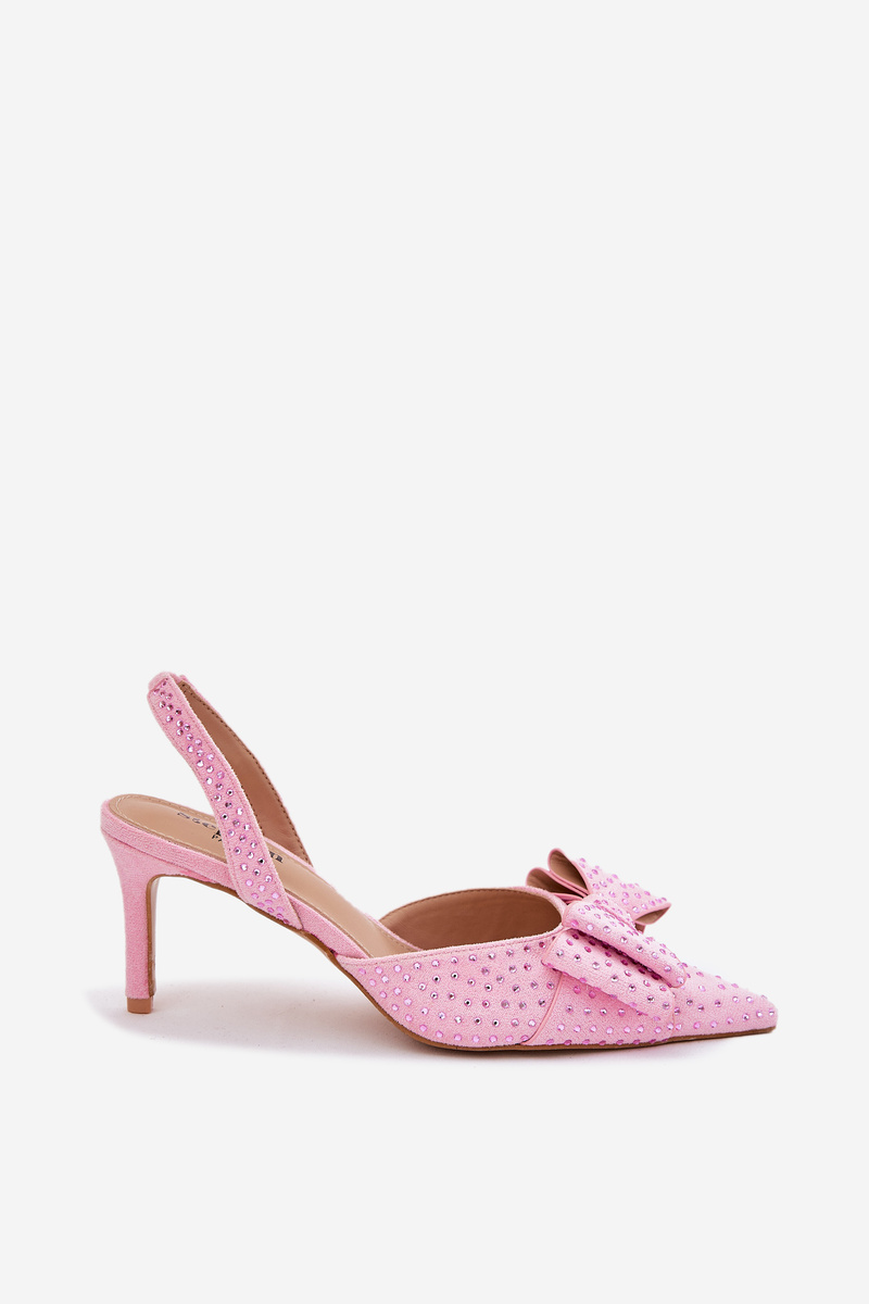 Szpilki Z Kokardką Zdobione Odkryte Pięty Różowe Nilandriela