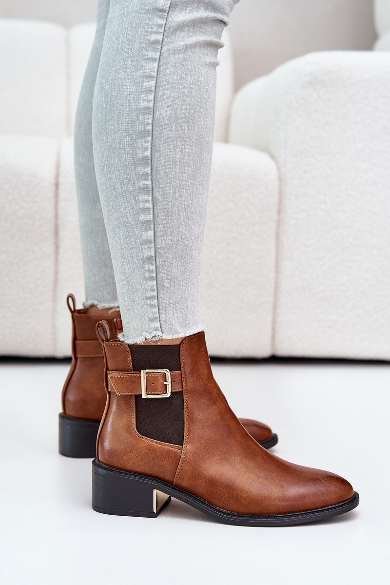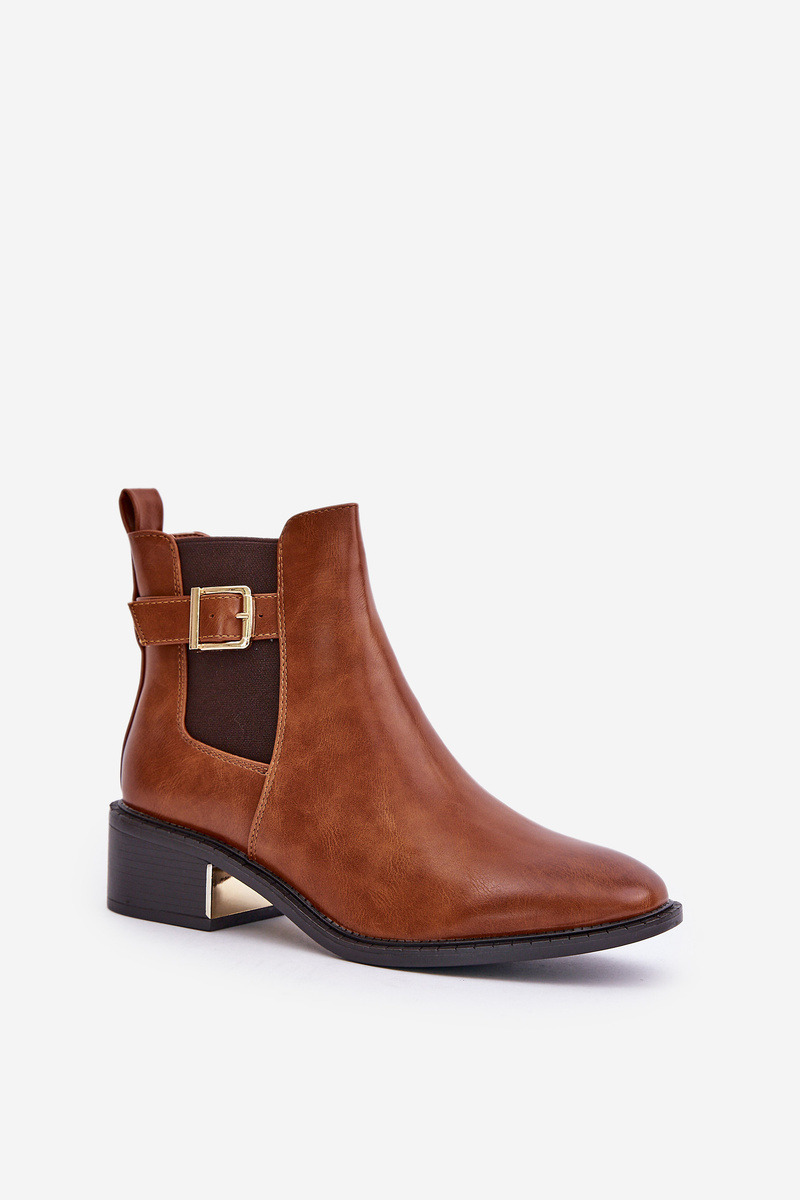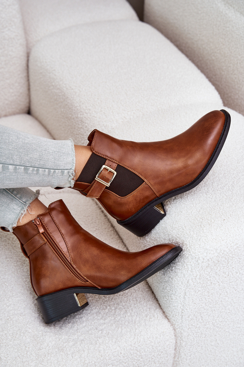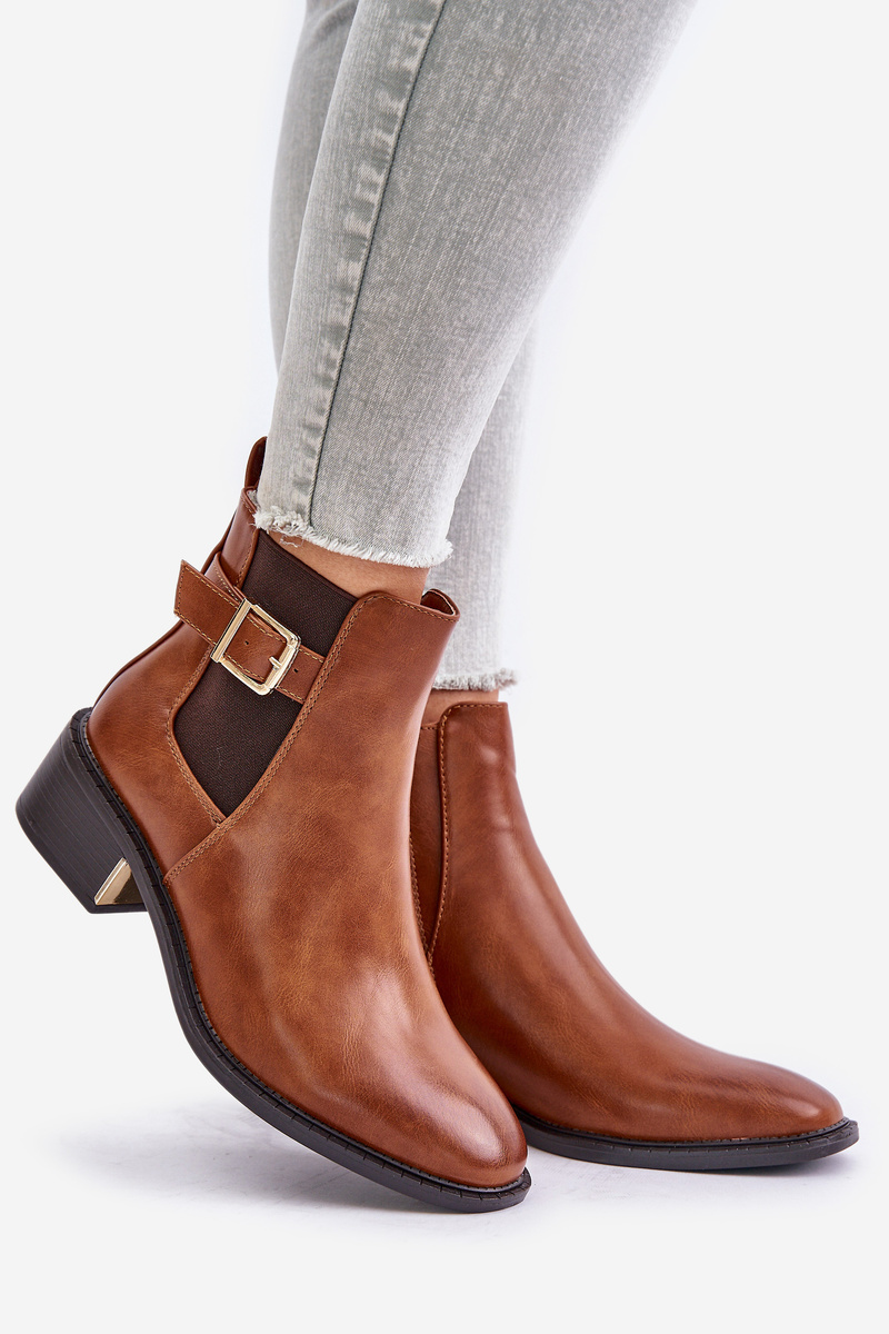 Sztyblety Botki Ocieplane Niski Obcas Złota Klamra Camel Vomera