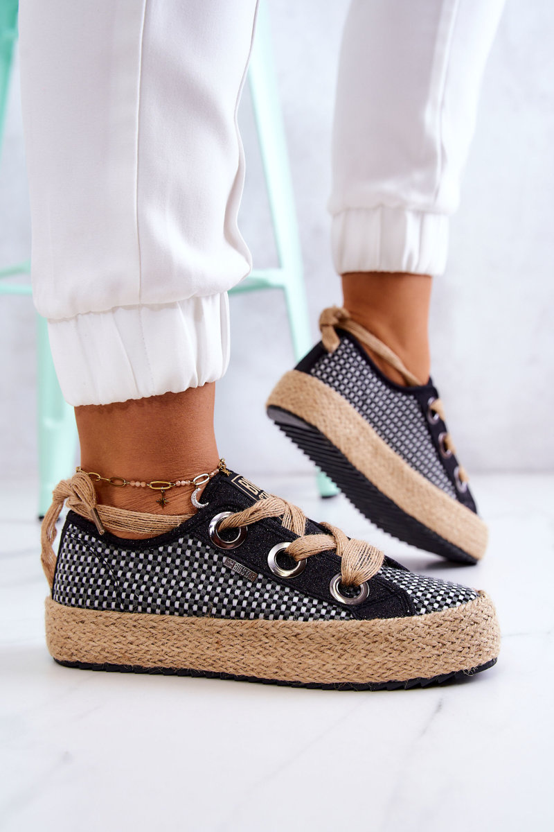 Tenisówki Damskie Modne Plecione Czarne Big Star JJ274393