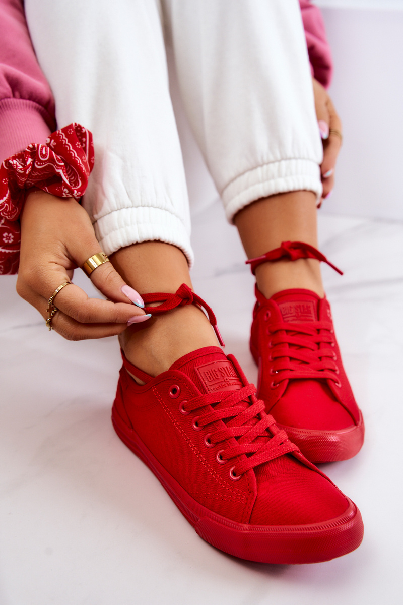 Tenisówki Damskie Niskie Wiązane Big Star Czerwone JJ274068