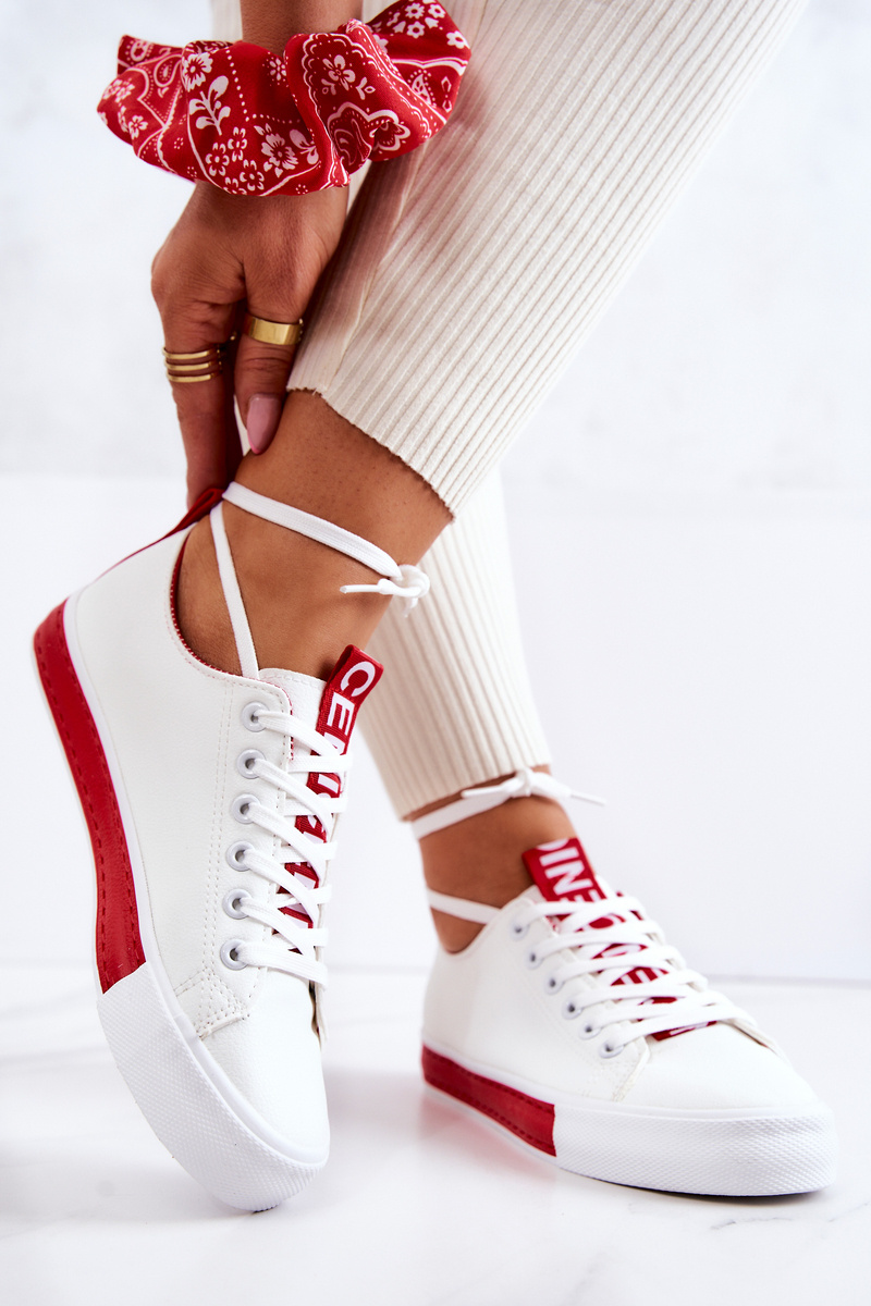 Tenisówki Damskie Skórzane Niskie Biało-Czerwone Mikayla