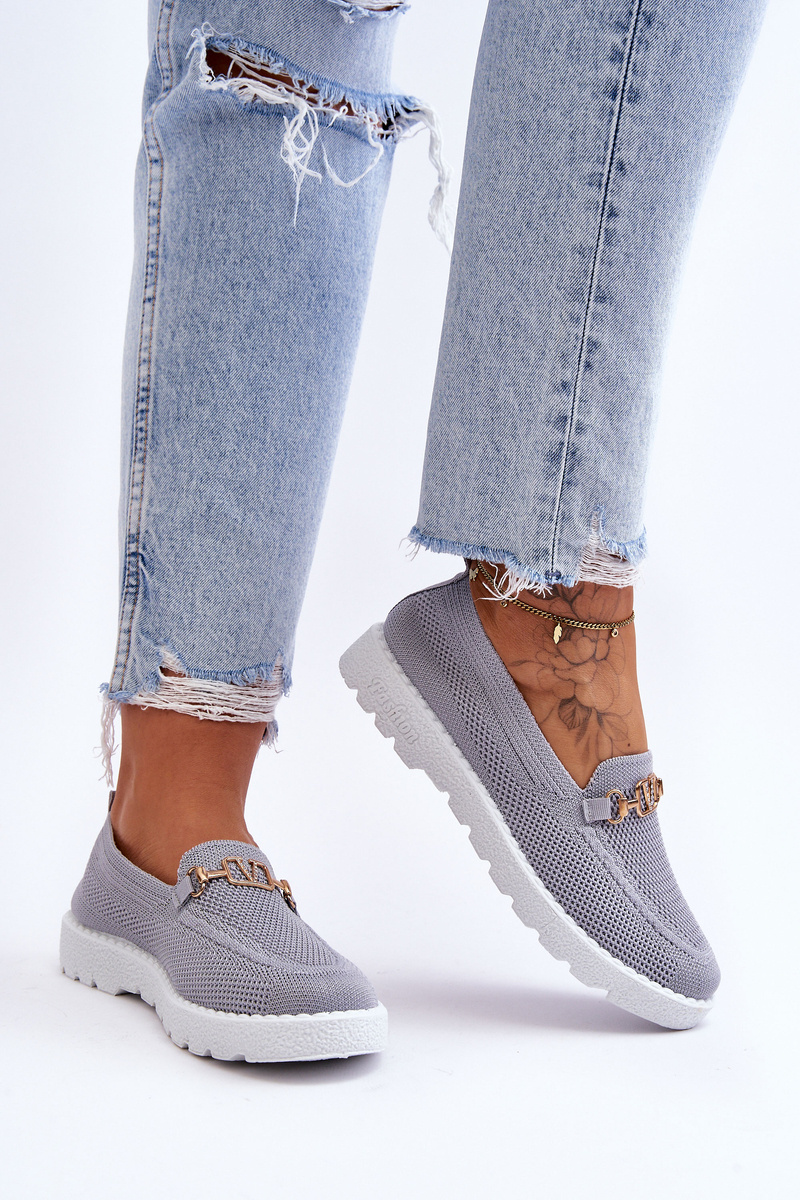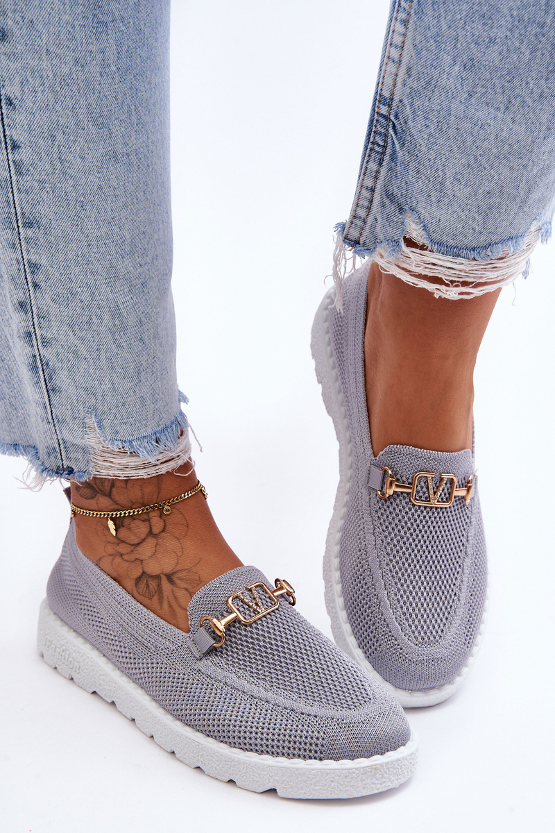 Tenisówki Damskie Wsuwane Slip-On Ozdoba Szare Alena JY301