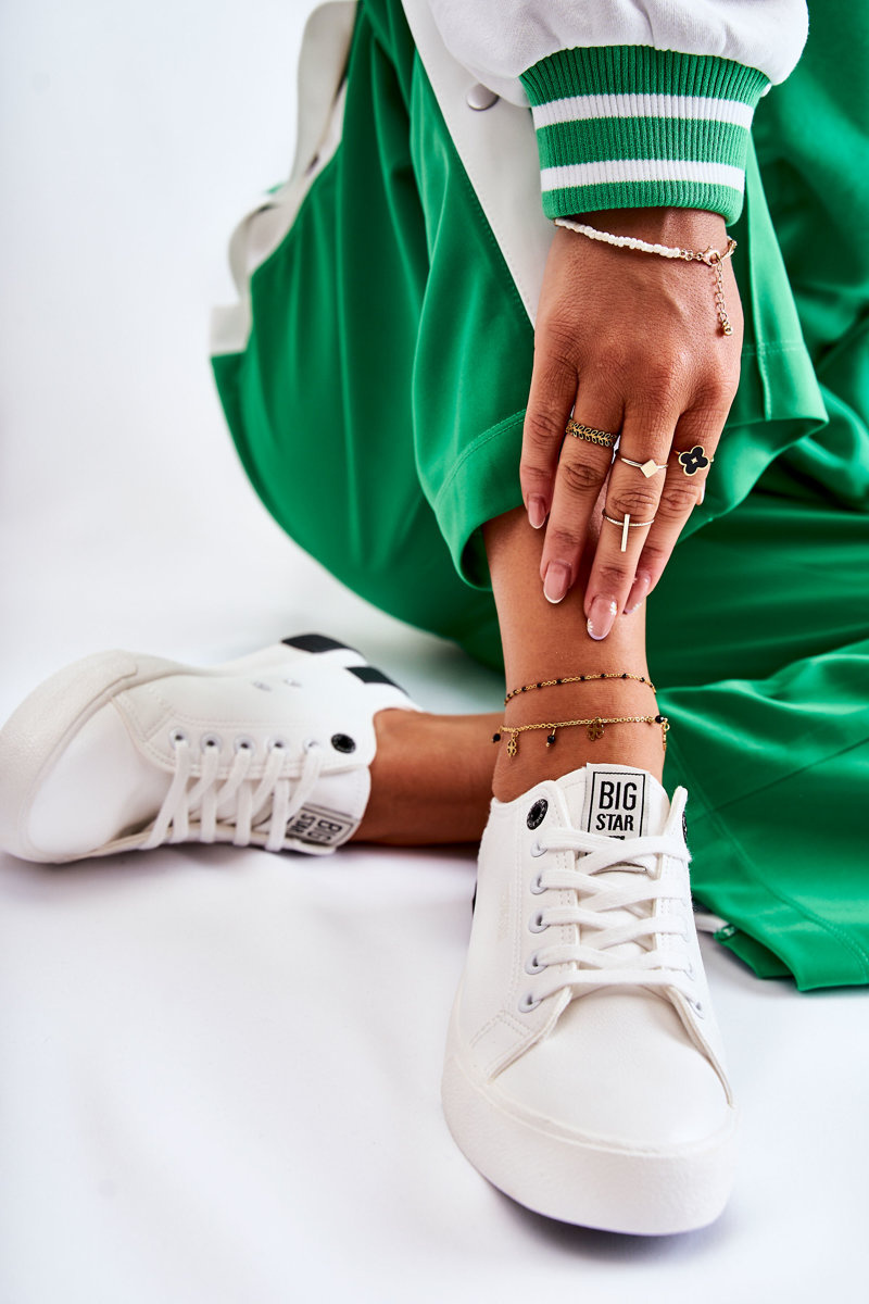 Tenisówki są niezwykle lekkie i komfortowe w noszeniu. Krój oraz materiał odpowiednio dopasowuje się do tęgości stopy. Idealne obuwie na spotkanie z przyjaciółmi przy grillu czy na co dzień do pracy, szkoły. Wykonane z eko skóry. Buty posiadają miękką, materiałową wkładkę. Klasyczny, wiązany model. Na języku oraz z tyłu posiadają logo marki Big Star.