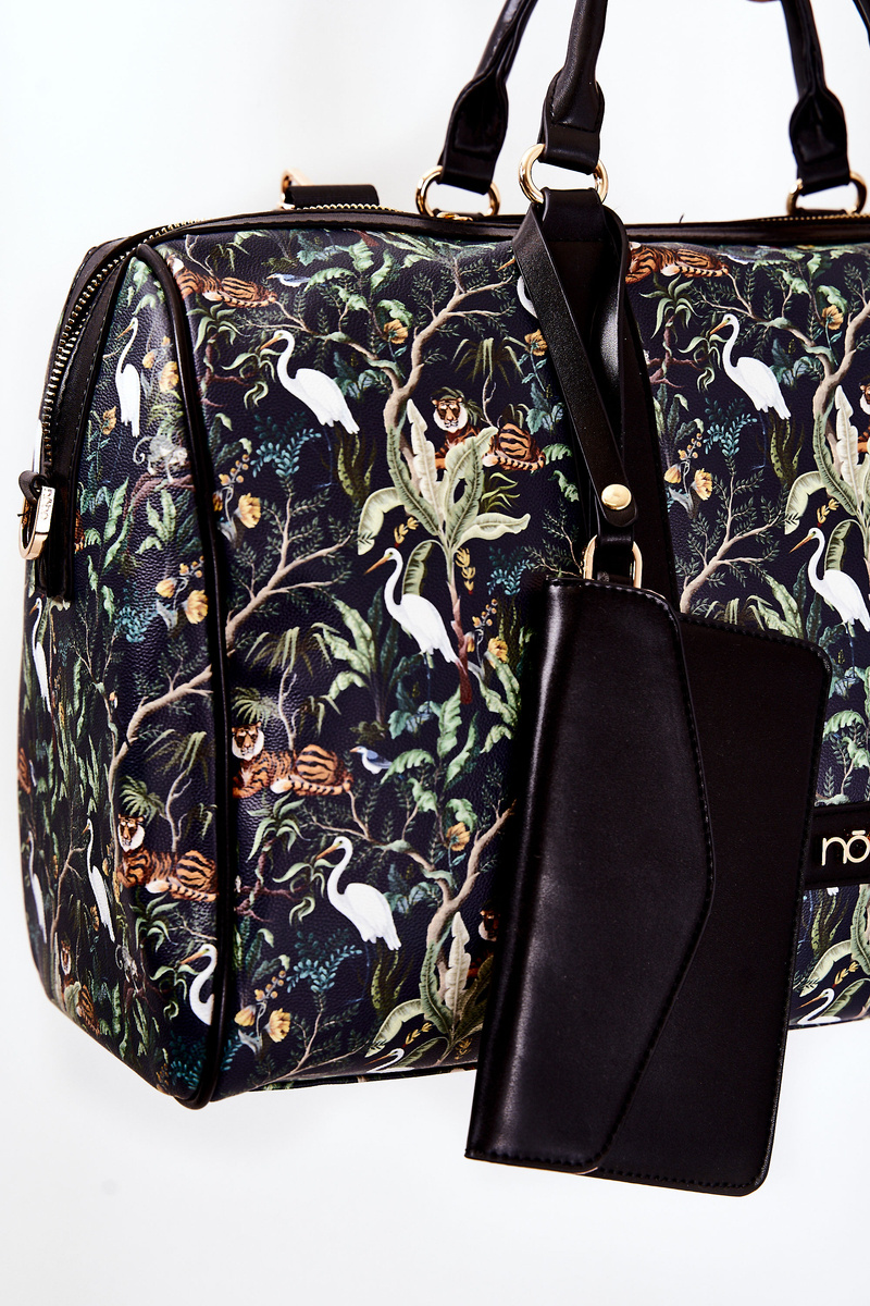 Ten model powinien zagościć w Twojej szafie ! Świetny wzór oraz wykonanie czyni tę torbę podróżną wyjątkową. Klasyczny kształt, odpowiednia wielkość – czego chcieć więcej? Wykonana z wysokiej jakości eko skóry w print. Główna komora zapinana na zamek błyskawiczny. Dodatkowa saszetka dołączona do torby, która jest odpinana. W środku znajdują się dwie kieszonki otwarte i jedna zamykana na suwak. Dodatkowo torebka posiada odpinany, regulowany pasek.