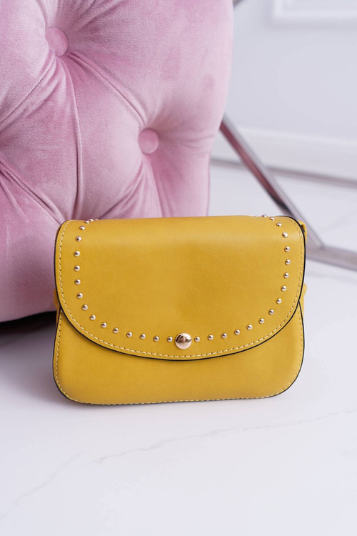 Torebka Damska Mała Kuferek Złote Nity Zółta