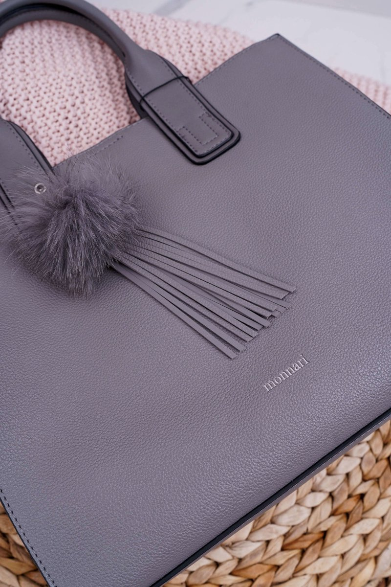 Wizytowa torebka damska o średniej wielkości (35, 29, 12cm) zawieszona na rączkach, z przywieszką w postaci sztucznego futerka i frędzelka. Na przednim panelu torebki tłoczone subtelne logo marki Monnari. Torba zamykana na suwak, w środku jasna podszewka i przegródki na drobiazgi. Polecamy ten model do eleganckiej stylizacji.
