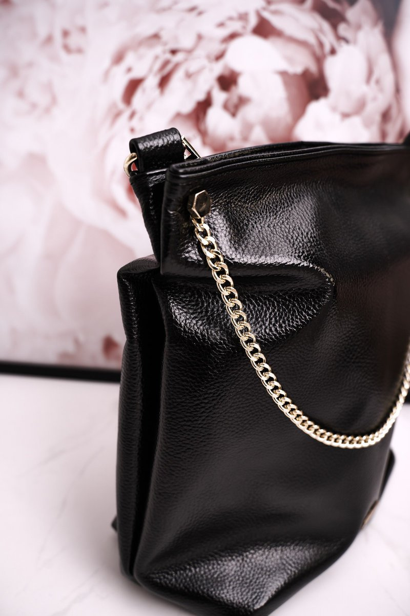 Torebka Damska Z Odpinanymi Paskami LAURA BIAGGI Lakierowana Czarna