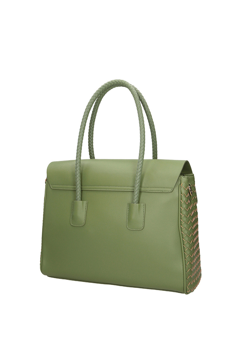 Ten model powinien zagościć w Twojej szafie ! Świetny wzór oraz wykonanie czyni tę torebkę wyjątkową. Klasyczny kształt, odpowiednia wielkość – czego chcieć więcej? Wykonana z wysokiej jakości eko skóry z plecionym przodem. Klapa zamykana na zatrzask z ozdobnym bambusowym zapięciem. Wnętrze torby jest podzielone na dwie otwarte komory, w których znajdują się dodatkowe kieszonki oraz na jedną zamykaną na suwak. Dodatkowo torebka posiada odpinany, regulowany pasek.