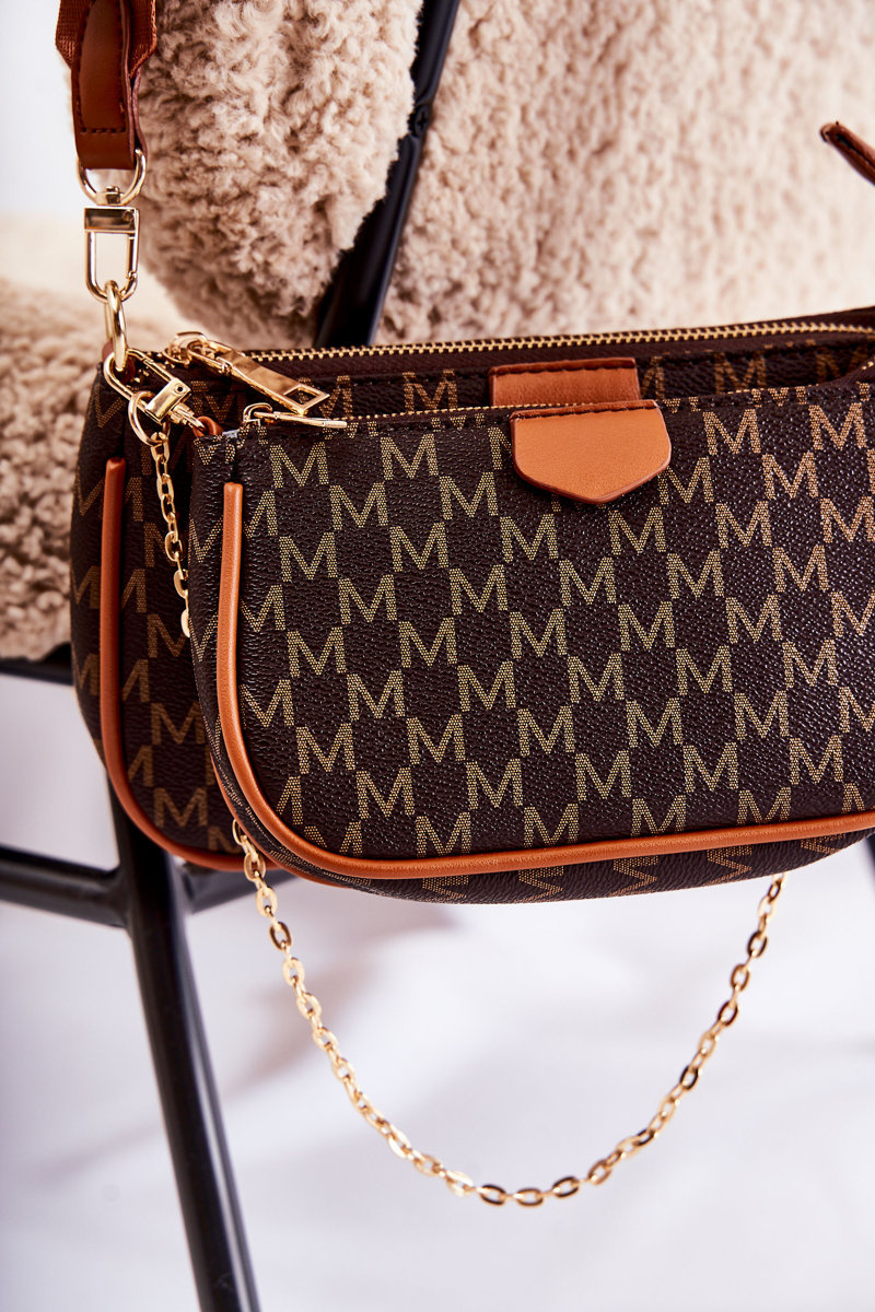 Torebka Listonoszka Portmonetka Damska 3w1 Brązowa Bormea